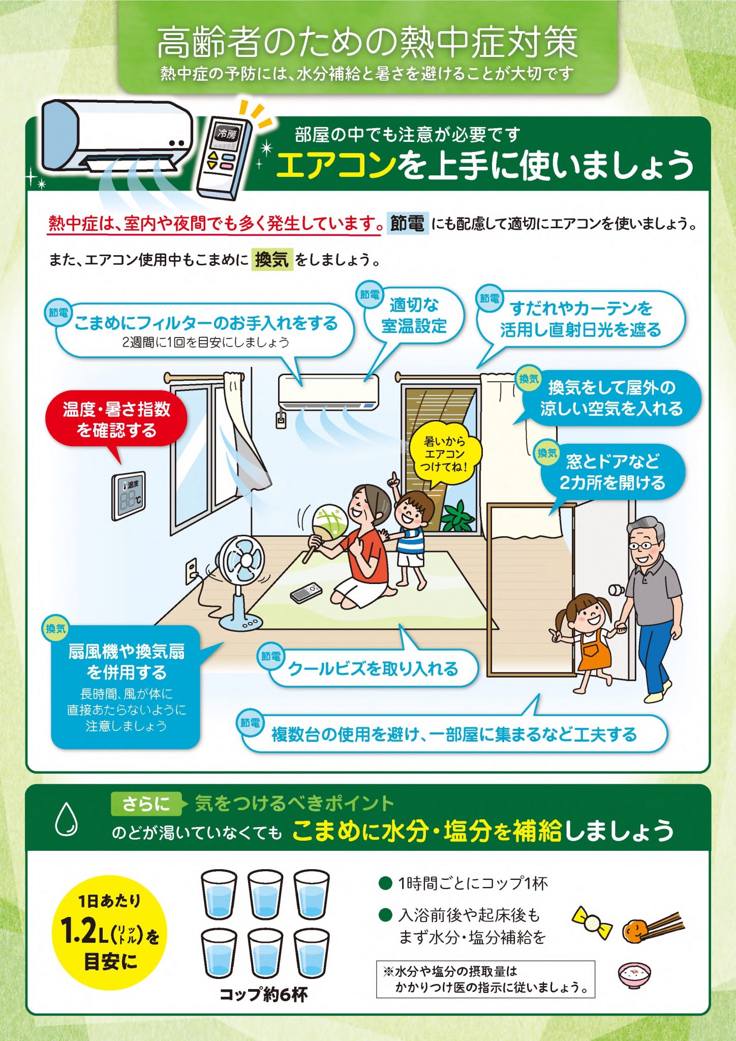 この度、厚生労働省などから、高齢者の方向けの熱中症対策を分かりやすくまとめたチラシが
