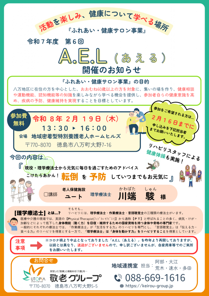 令和7年度 第6回『ふれあい健康サロン A.E.L(あえる)』の開催日が決定しました!