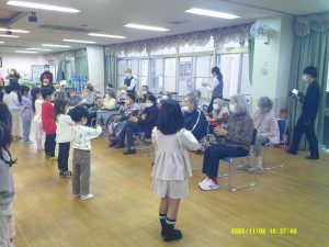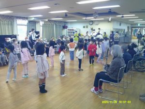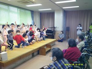園児たちの元気の良い挨拶から始まり、『歌の合唱』と『阿波踊り』を披露していただけ、ご利用者の皆さまと触れ
