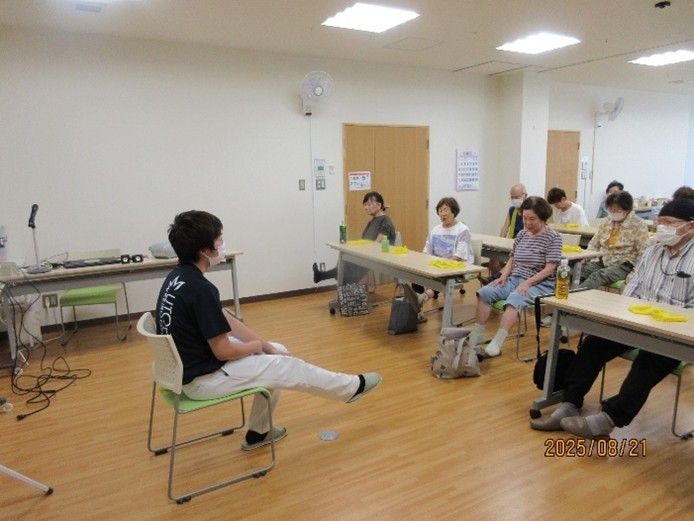 老健ユートの理学療法士である川端さんによる「自宅でもできる」介護予防体操の紹介と