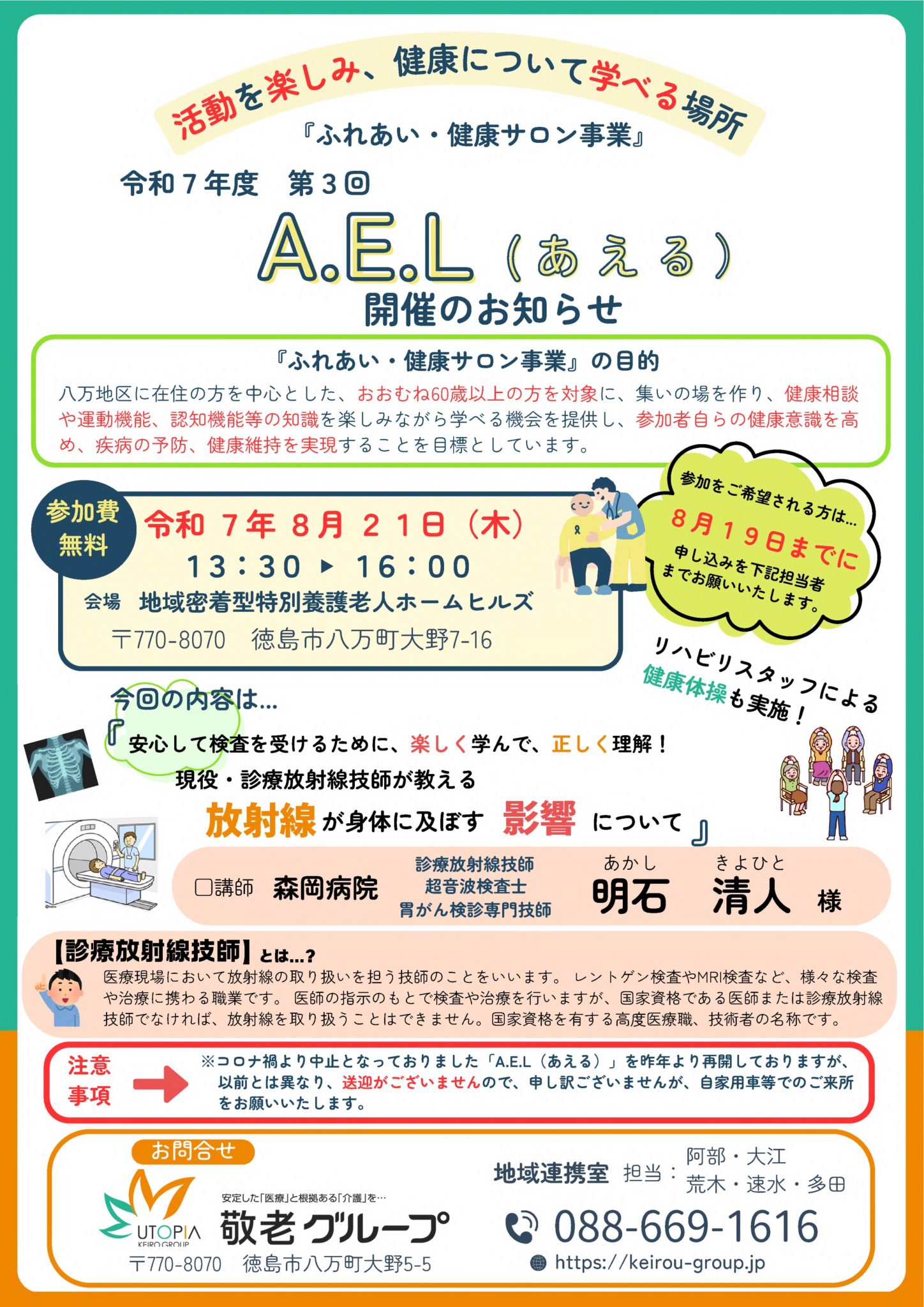 令和7年度 第3回「ふれあい・健康サロン」A.E.L(あえる)開催のお知らせ