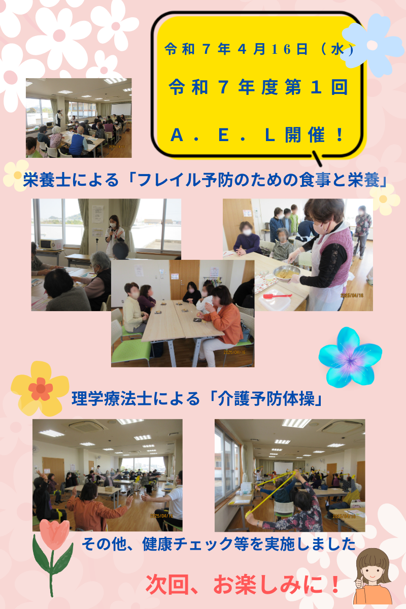 令和7年4月16日(水)「ふれあい・健康サロン」A.E.L(あえる)を開催しました!!