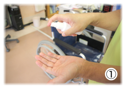 ⑥1ケアごとに小まめな手指消毒を実施しています。