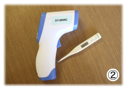 ①体調確認・体温測定・・・ご利用日当日の体調の確認と体温測定をお願いしています。