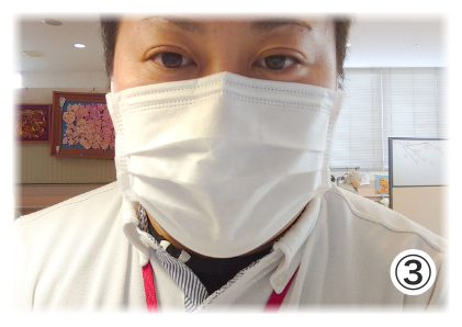 ③マスクの着用・・・全職員がサージカルマスクを着用し、飛沫感染の予防に努めています。
