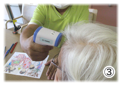 ②体温測定・バイタルチェック・・・到着後、デイルームにて体温測定とバイタルチェックを行い、体調確認をさせていただきます。