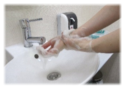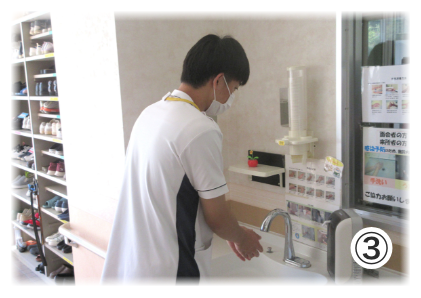 ③職場に戻り玄関手洗い場にて手洗い・手指消毒