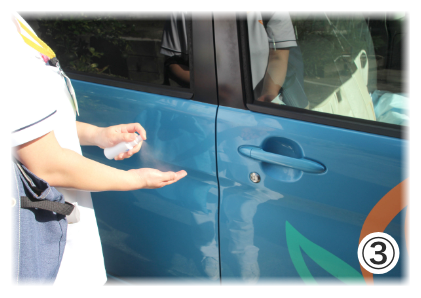 ③車両に乗車する前に手指消毒